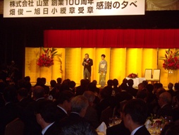 古紙流通大手の㈱山室(畑俊一社長、本社=東京都台東区)では今年、1913年の創業から100年目を迎えている。創業100周年の記念と、さきの秋の叙勲で畑俊一社長が旭日小綬章を受章したことを記念して今月3日、東京・千代田区の帝国ホテルで感謝の夕べを開いた。業界関係者など多数が出席し、盛大な祝宴となった。
